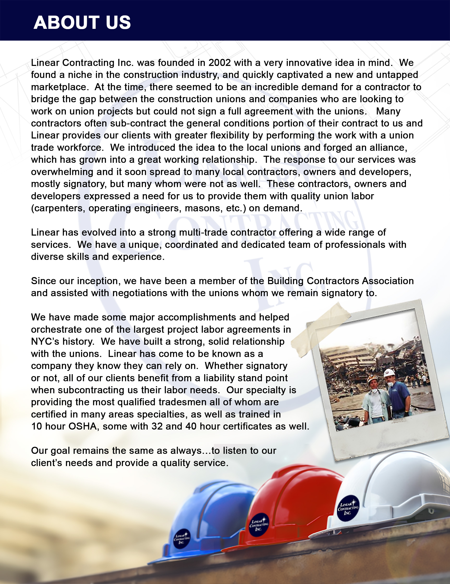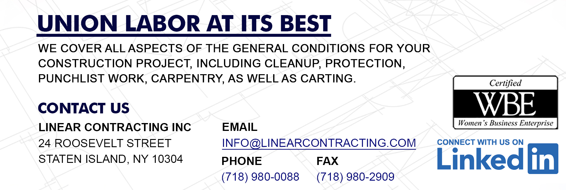 CONTACT US: Phone: 718-980-0088 E-mail: info@linearcontracting.com